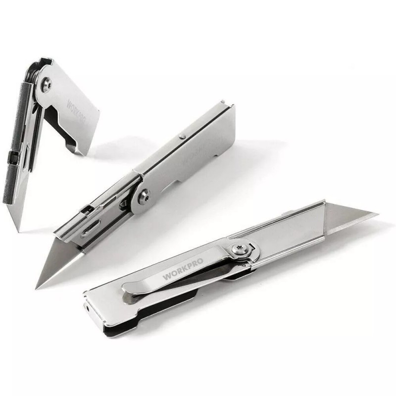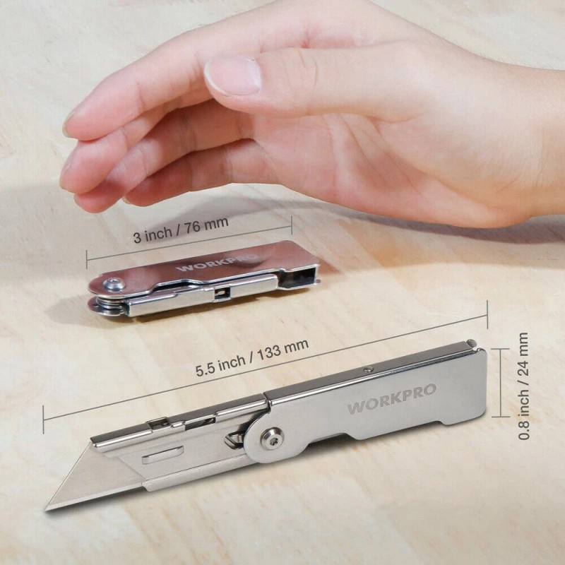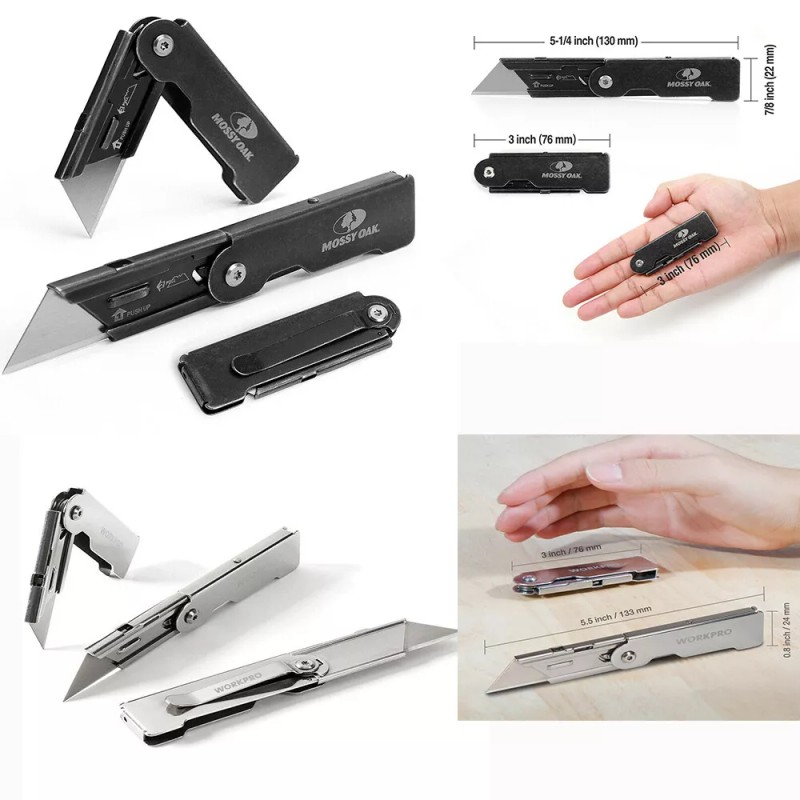 Workpro Folding Pocket Utility Knife Set 2 /3 Pack Stainless Steel Utility Knife Set NEW - 2 Pack Black