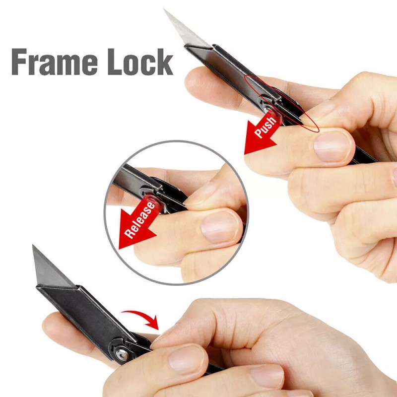 Secure Frame Lock - The side lock prevents the razor blade from slipping during use. Make sure you slice and dice through those packages safely.