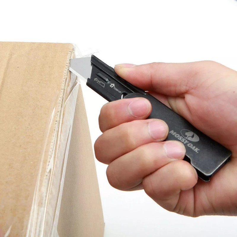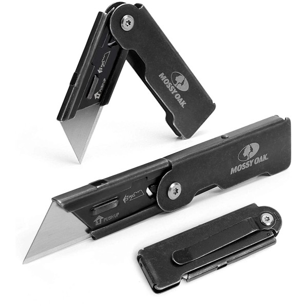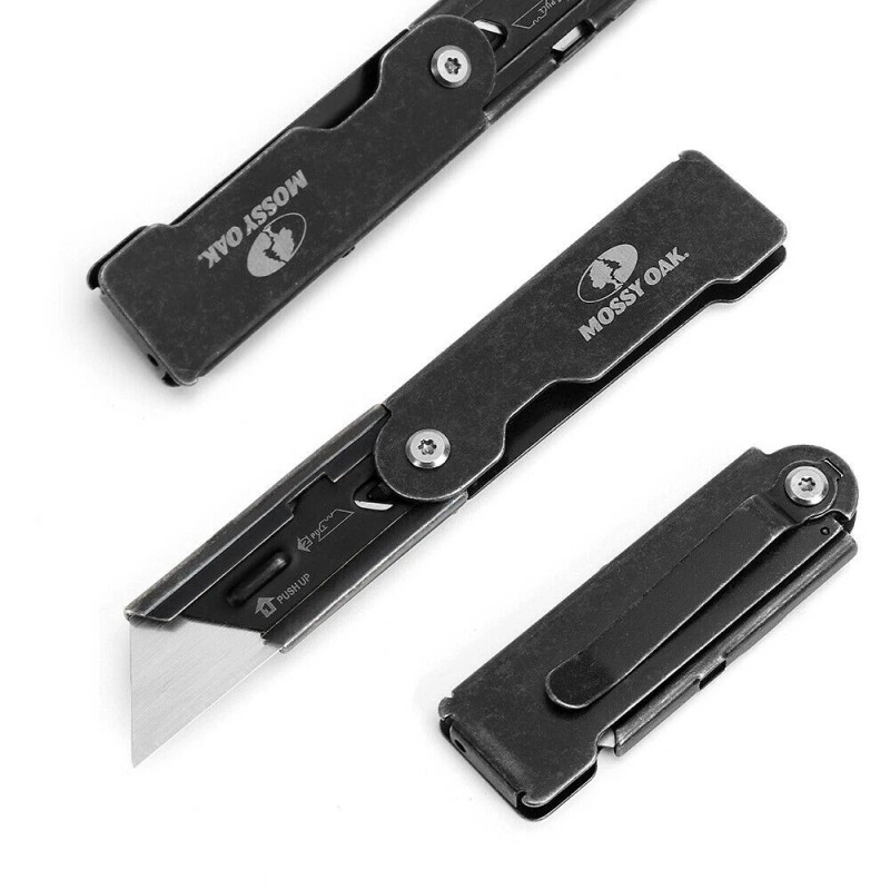 Compact Utility Knife with Belt Clip - EDC folding utility knife can be placed easily in the pocket, the stone-washed body offers a nice look. (This box cutter is designed with a distressed surface, not a used utility knife.) Pocket clip leads to easy and safe carry; the clip may be a little bit loose but will not fall, be relaxed and take care during use.