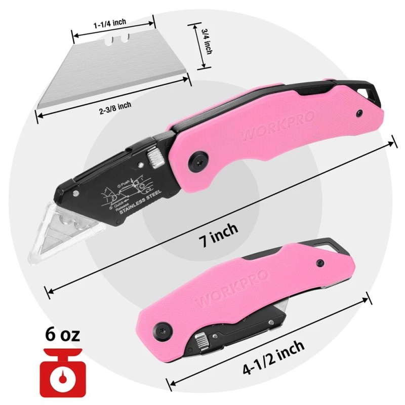 WORKPRO Folding Utility Knife Box Cutter with 10 PCS Blades Quick Change Blade