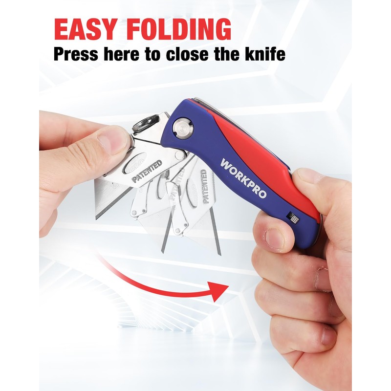 WORKPRO Folding Utility Knife, Quick-Change Box Cutter, Blade Storage in Handle with 5 Extra Blades Included