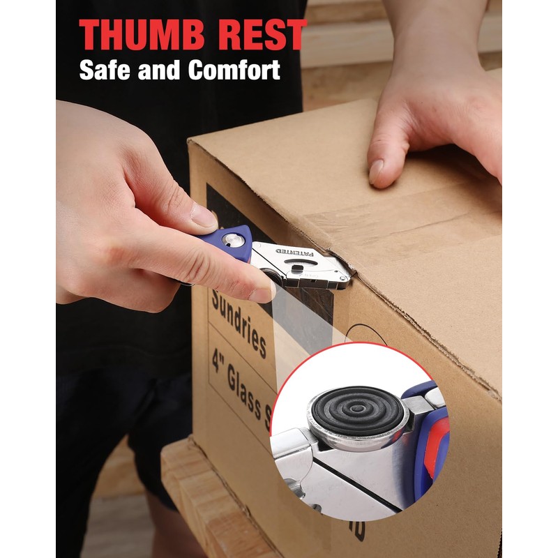 - Safe to use. This knife cutter is built with quality steel handle and anti-slip ABS grip which provides more security for you. The ergonomic curve of the handle fits your hands. No need to worry about the blade slipping from your hand while you are working. Also our knife is built with back lock design that safely keeps your blades in place when in use, which also allows you one-hand easy opening and closing