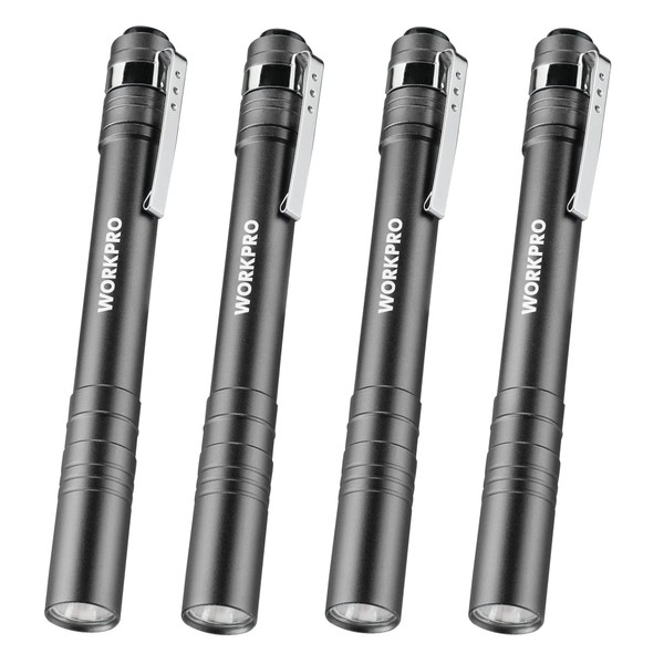 WORKPRO LED Pen Light, Aluminum Pen Flashlights, Pocket Flashlight with Clip for Inspection, Emergency, Everyday, 2AAA Batteries Include, Gray(4-Pack)