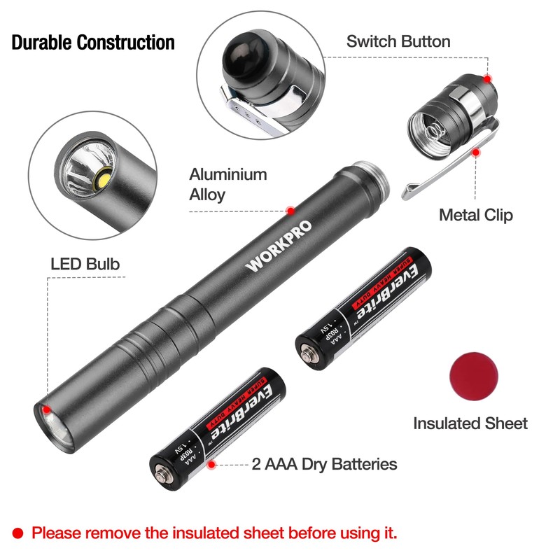 - Super Bright: Each pen light is equipped with 1 super bright LED and can last up to two hours with only two alkaline batteries (battery included), please remove the red insulating sheet before use. Lights up your paths and small dark spaces for a long time