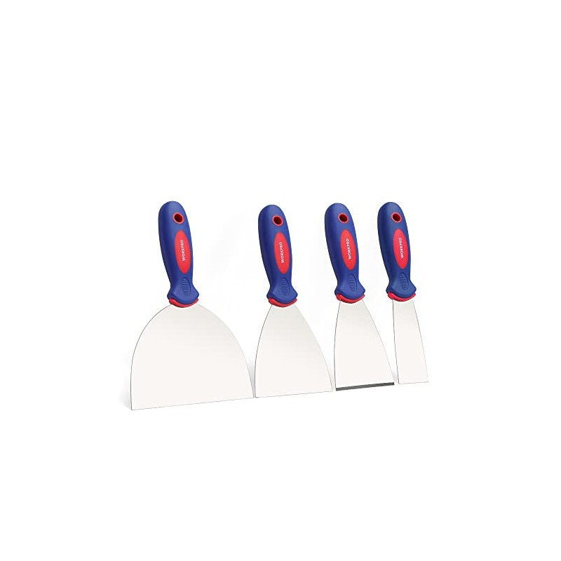 WORKPRO Wallpaper Scrapers 4-Piece, Stainless Steel Paint Scraper, Wall Scraper Set with Soft Handle, for Drywall Finishing, Plaster Scraping, Wallpaper, 38/76/100/150mm