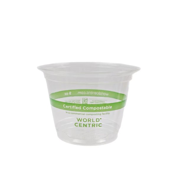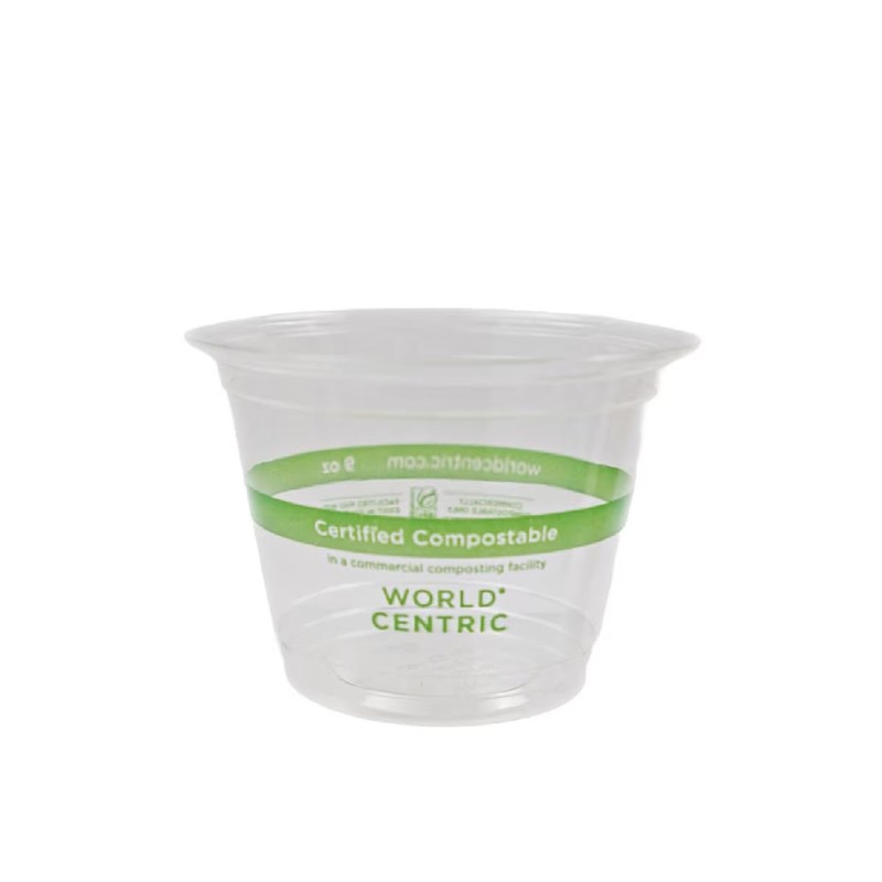 • Pack of 200 World Centric 9 ounce PLA plastic cups, the perfect size for cocktails, soda, samples, and small desserts or sundaes.