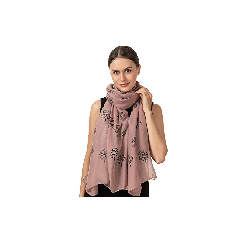 World of Shawls Mulberry Tree Scarf Shawl Wrap Soft Warm (Dusky Pink With Black Tree)