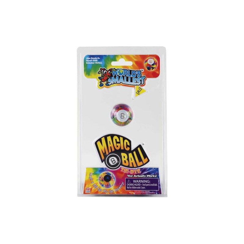 - The World's Smallest Magic 8 ball is now available in a new colorful style with a tie-dye pattern