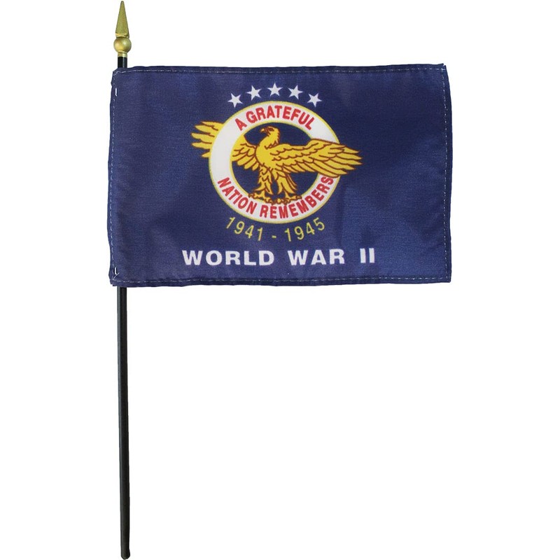 World War II Commemorative - 4 in. x 6 in. Military Stick Flag