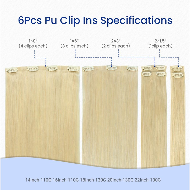 - Upgrade Invisible Design:Seamless Clip in Extensions Human Hair have PU-designed to be narrow on the outside and wider on the inside,the ultra-thin PU weft allows for a breathable and lightweight fit, allowing you to flaunt your style from dawn to dusk