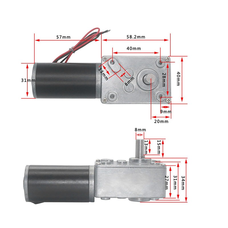 • 【31mm DC Motor】31mm high quality copper tube motor, small volume and big torsion, with micro-turbines worm, you can change the wiring-connection to change motor rotation.