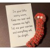 Each worm is crocheted with acrylic yarn and has googly eyes applied with hot glue.