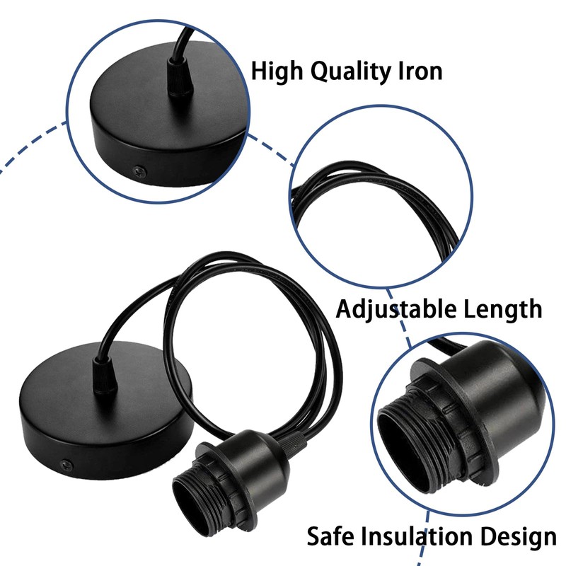 - 【 Product Function 】 : Designed with a standard screw base, these fittings can effortlessly hold a variety of light bulbs, converting them into elegant pendant or ceiling lights. They offer a stable electrical connection, ensuring consistent illumination, and the 1m length enables flexible height adjustments to match different room aesthetics.