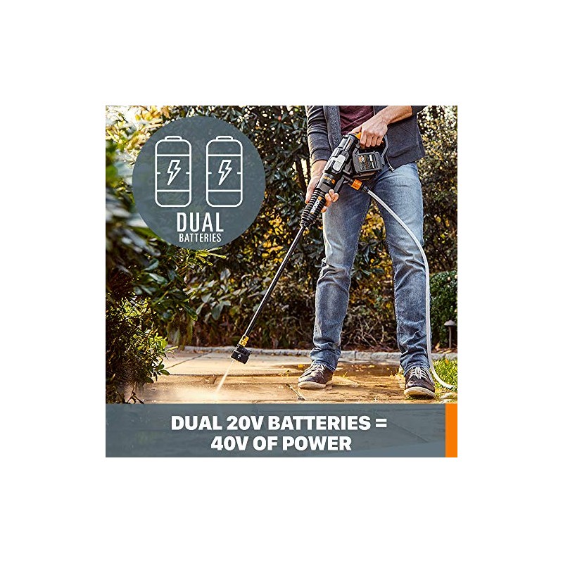 WORX WORX 40V Power Share Hydroshot 2X20V Portable Power Cleaner (Batteries & Charger Included) - WG644 Black/Orange