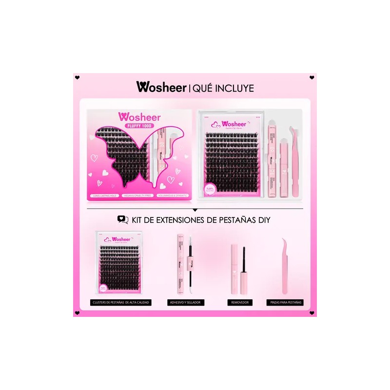 Descripción ¿Por qué elegir WOSHEER LASH? 1.Comodidad suprema: Material ultraligero y flexible que imita la suavidad de una pluma. Diseño hipoalergénico que no causa irritación ocular. 2.Estilo versátil: Longitudes mixtas para personalizar el efecto (desde ojo almendrado hasta dramático). Ideal para eventos formales, fiestas, looks diarios o sesiones fotográficas. 3.Aplicación fácil para principiantes: No requiere habilidades profesionales. Tiempo de aplicación: menos de 5 minutos. 4.Calidad premium: Pestañas densas.Fibras 3D que simulan pestañas naturales sin aspecto artificial. Resistencia al desgaste: no se quiebran al manipularlas. 5.Durabilidad garantizada: Hasta 3 semanas de uso continuo con el pegamento y sellador WOSHEER (impermeable y libre de cruces). 6.Reutilizable y ecológico: Limpia los residuos de pegamento con un hisopo + removedor WOSHEER y almacénalas en su estuche original.