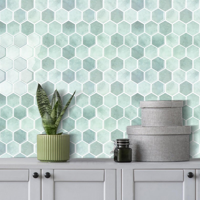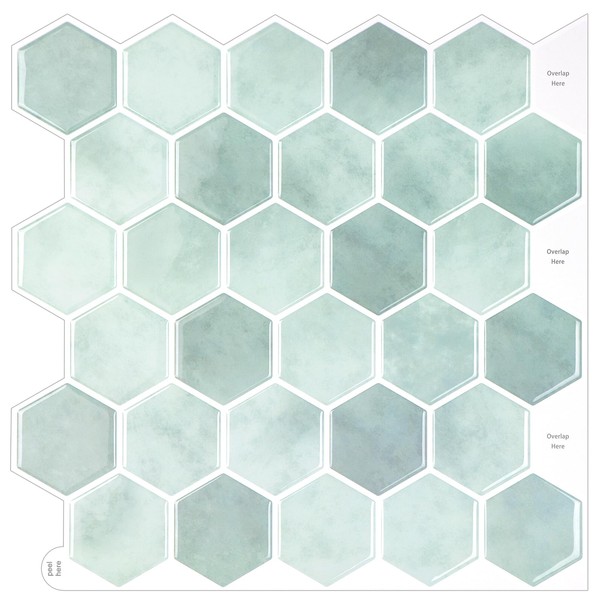 WoStick Fliesenaufkleber 3d Klebefliesen Küche Bad Küchenrückwand Folie Fliesen Selbstklebende Hexagon(10-Stück 30.5x30.5cm)