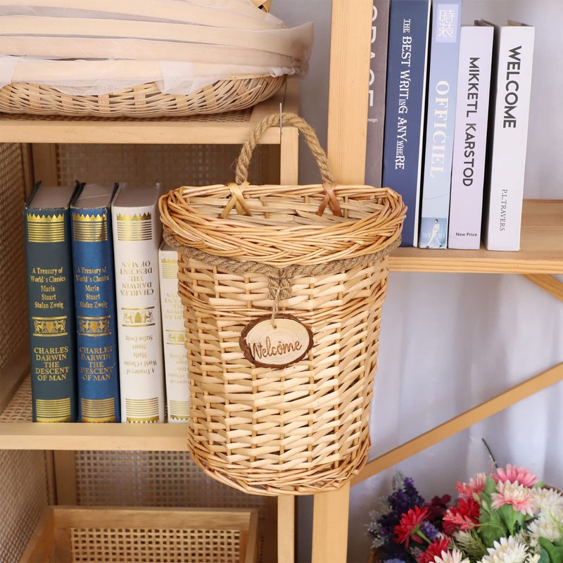 Woven Wicker Hanging Basket Door Hanging Basket Wall Decorations for Home Garden Farmhouse (original)