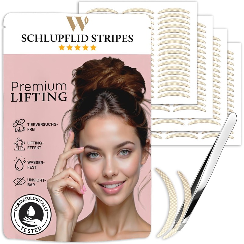 WOW STRIPES Schlupflider Augenlid Premium Stripes transparent (168 Stk) | Lifiting ohne OP, hautfreundlich, natürlich | Eyelid Tape Tapes Straps Strip als Lifting Set Augen-Lidstraffung Augenpads-L
