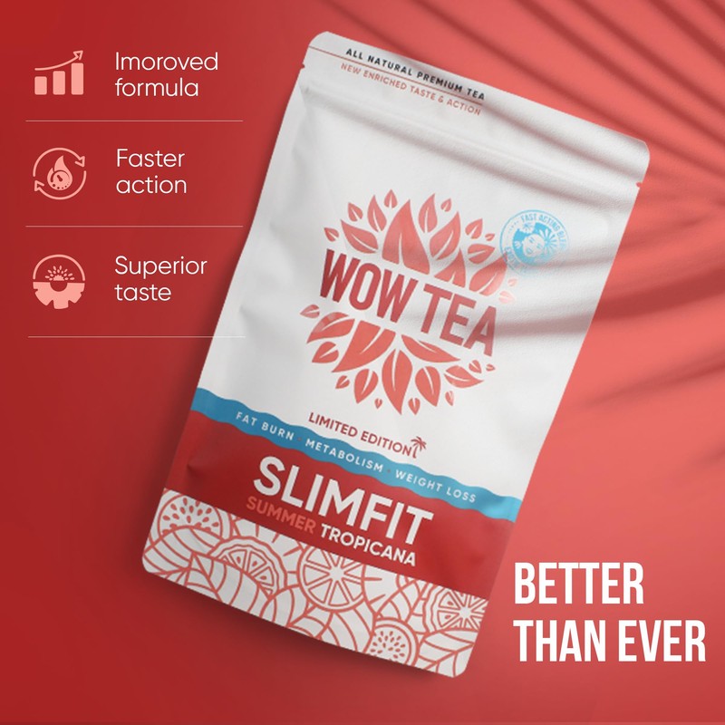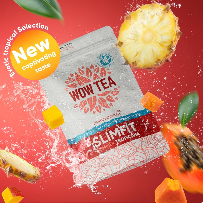 WOW TEA WOW TEA Smmer SlimFit Tee - Natrlicher Di?t Tee | Schnell wirkende Kr?uter zum Abnehmen | Programm fr flachen Bauch durch mit grnem Tee | Exotischer Mango-Geschmack | 150 gr, de in EU