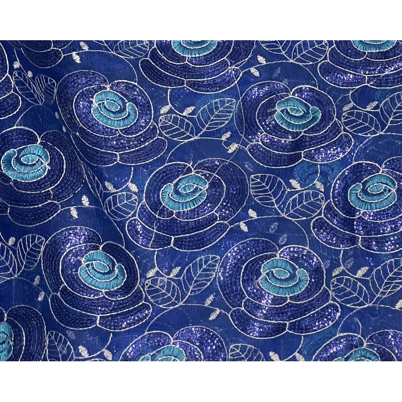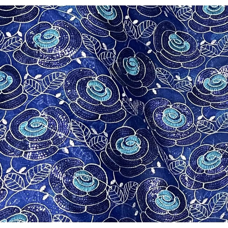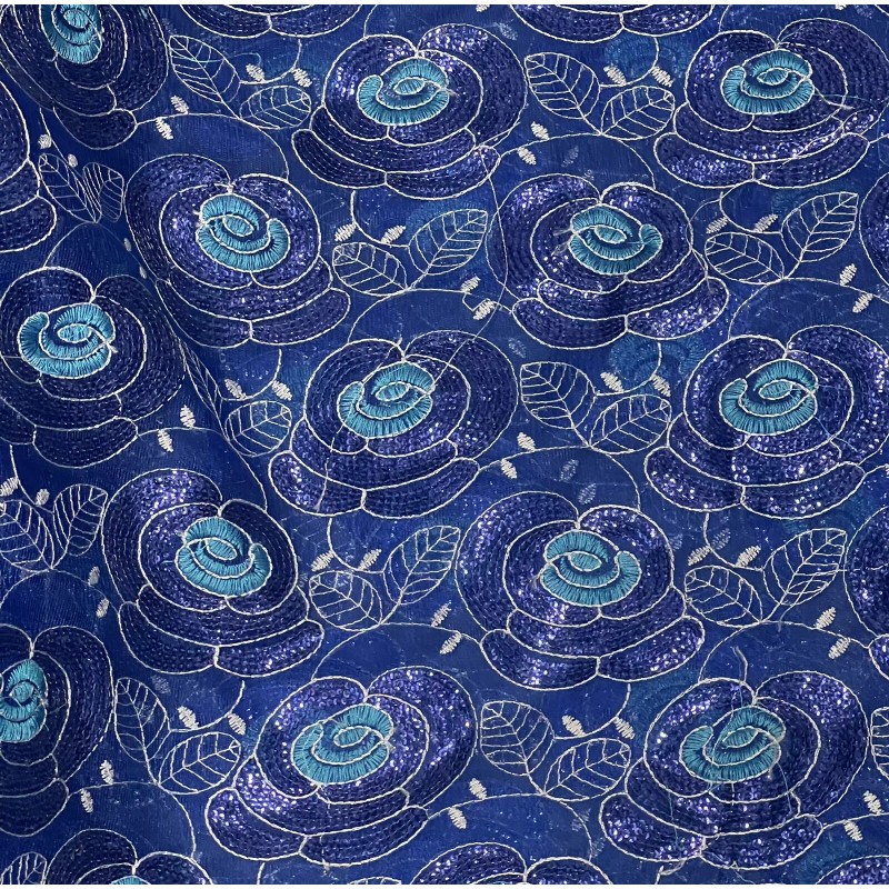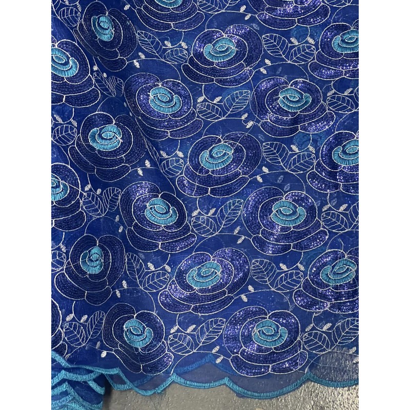 wowfabric4less123 2 Yard Blue Silver Turquoise Embroidery sequins Lace fabric 50” Width