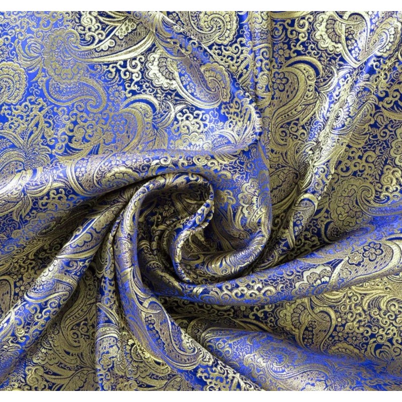 Add a touch of royalty to your creations with this stunning gold royal paisley brocade fabric. The 2-yard length and 60" width make it perfect for apparel, table tops, curtains, costumes, crafts, and pillows. The fabric weight is medium with metallic and antique/vintage features that add a touch of sparkle to your creations.