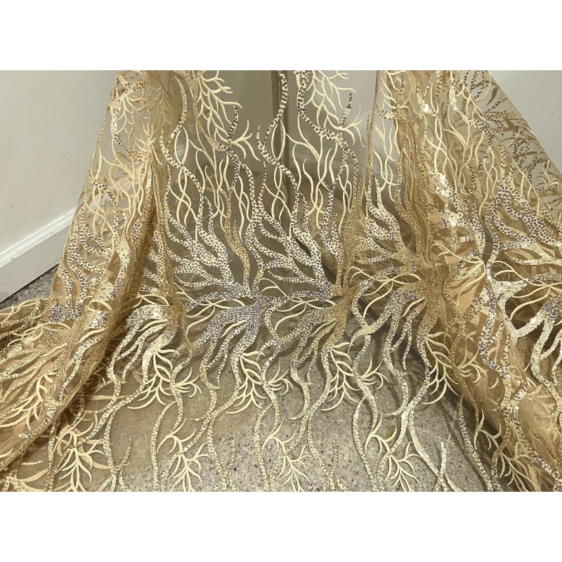 wowfabric4less123 GOLD Embroidery SEQUINS Lace Fabric 50” Width Sold By The Yard