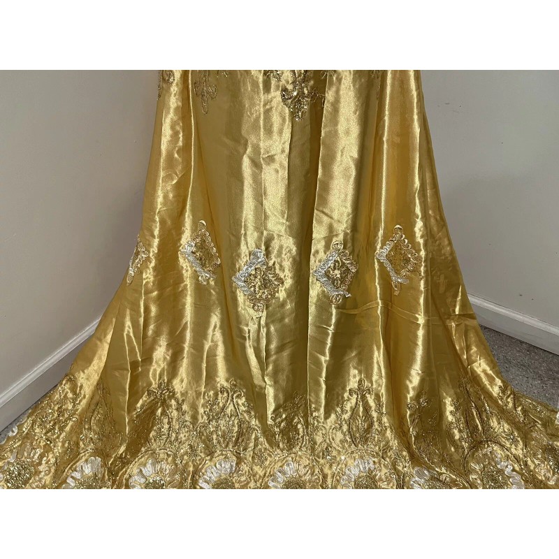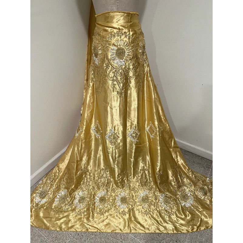 Wowfabric4less123 GOLD IVORY Satin W/Embroidery sequins Lace fabric 50” Width Sold By Yard