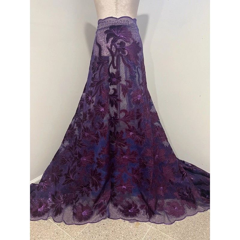 Add a touch of royalty to your next project with this stunning purple sequins embroidery velvet lace fabric. This medium-weight mesh velvet fabric is perfect for creating a range of apparel, accessories, and crafts, including dresses, bags, hats, gloves, and more. The fabric features both side finishes with scallops and is sold by the yard, measuring 46 to 59 inches in width.