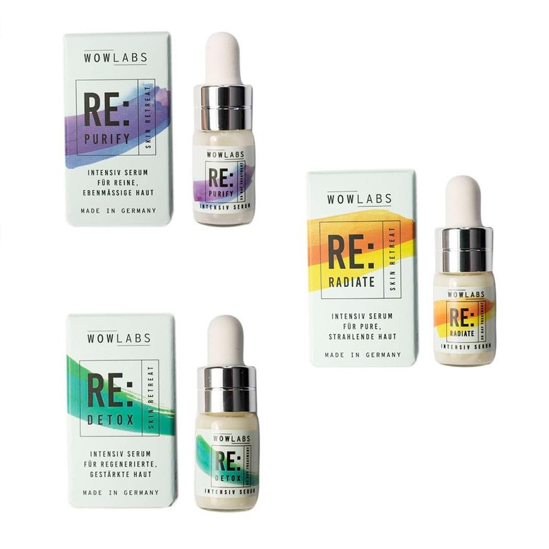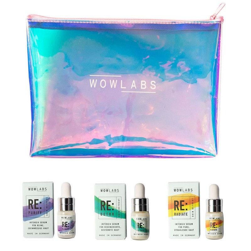 - Box contents: WOWLABS Skin Retreat Explorer Set (cosmetic bag in "wow" look with 3 x 3 ml free mini intensive serum sample (RE:DETOX, RE:PURIFY, RE:RADIATE), women's care products, skincare set, 3x serum face, face care made in Germany)