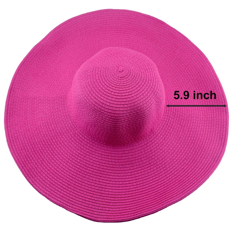 Wowlife Wide Brim Roll-up Big Beautiful Solid Color Floppy Hat (Hot Pink)