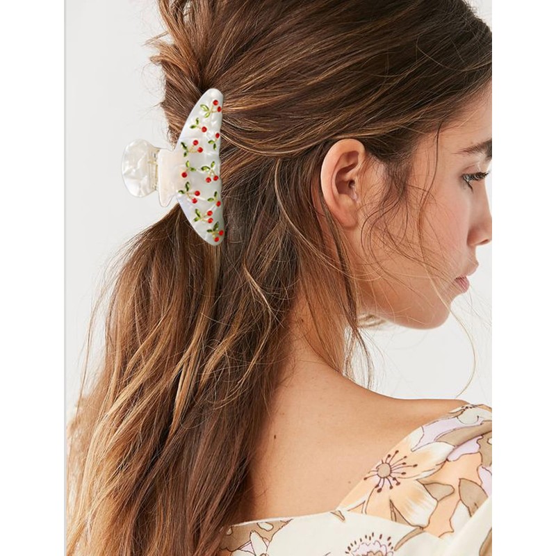 - Strong Grip for All Hair Types: Crafted from durable acrylic and safe metal spring, the 3.5" medium cherry hair claw provides a strong grip for both thick and fine hair, ensuring your hairstyle stays in place all day long