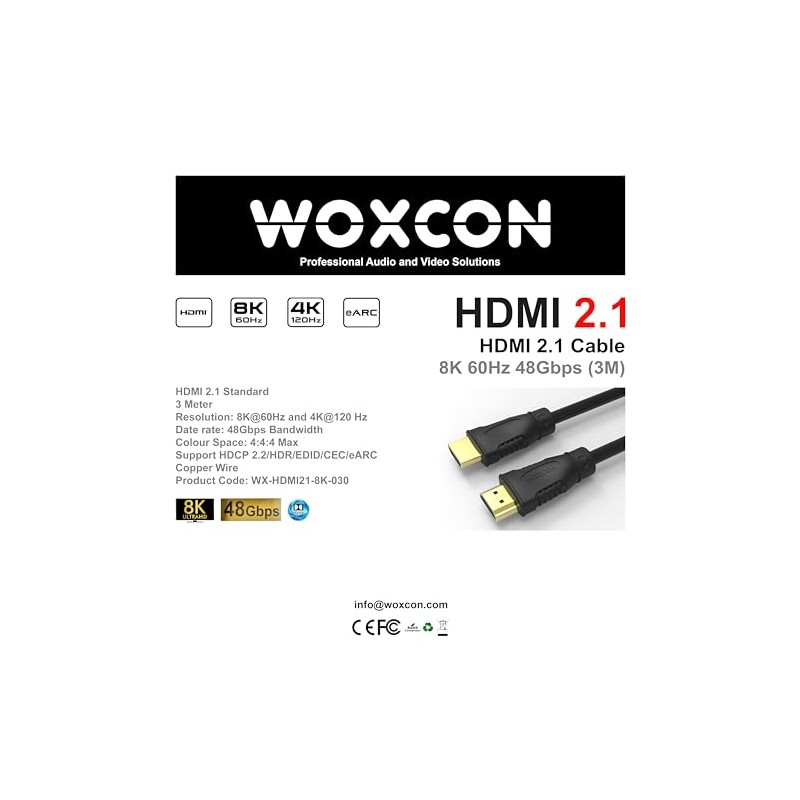 Woxcon - Hdmi 2.1 Kablo - 8K 60Hz, 4K 120Hz, 4K 60Hz, eARC, HDR, D-HDR, HDCP2.2, Dolby Vision, Dolby Atmos (3 Metre)