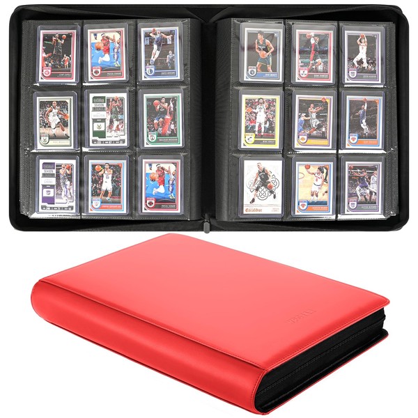 WPGEAR 9-Pocket Toploader Binder, Holds 360 3"x 4" 35PT Rigid Card Holders, Protective and Display Zippered Album with 20 Double Sided Pages for Trading Card and Sport Card - Red