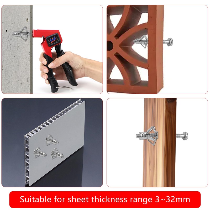 • Package contents: 1 x mounting pliers (for M4/M5/M6/M8), 36 x cavity dowels (6 sizes, 6 pieces each) {M4 x 32 mm, M4 x 46 mm, M5 x 37 mm, M5 x 52 mm, M5 x 65 mm, M6 x 52 mm}, offers more options for installation.