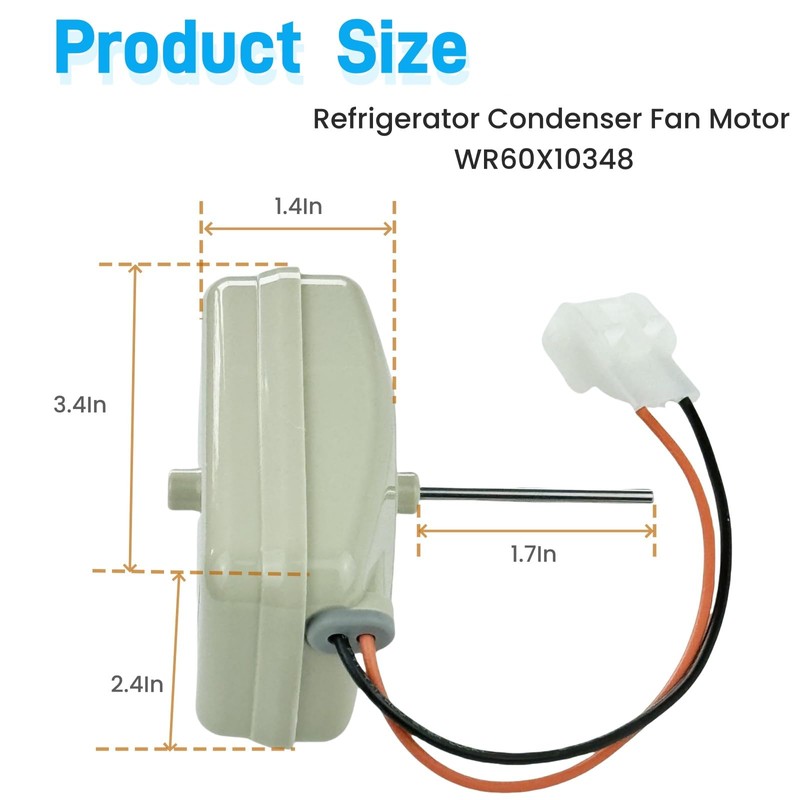- The Refrigerator Condenser Fan Motor WR60X10348 made of high-quality ABS plastic, durable. The motor circuit is made of high-quality metal inside, with long service life and strong reliability, Easy to install.