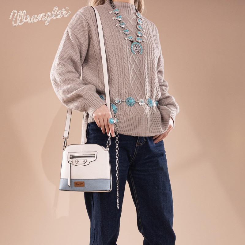 Wrangler Crossbody Bag for Women Color-Block Leather Cross Body Purses with Adjustable Strap Strap WG145-211BG-JN