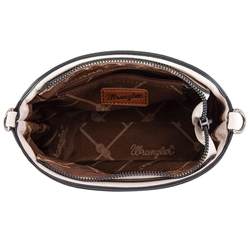 - Wrangler crossbody purse measures 9.5"L x 3"W x 7.2"H (Cross body drop: 14.5"-26.5")