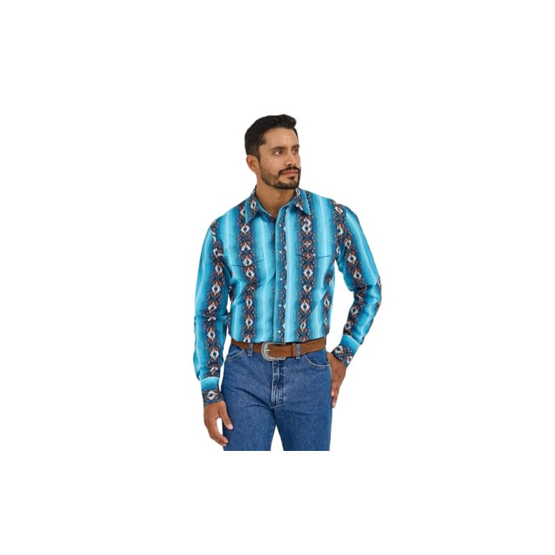 Wrangler Men's Checotah Sea Salt Blue Snap Shirt 112365886 (US, Alpha, Medium, Regular, Regular, Sea Salt Blue)
