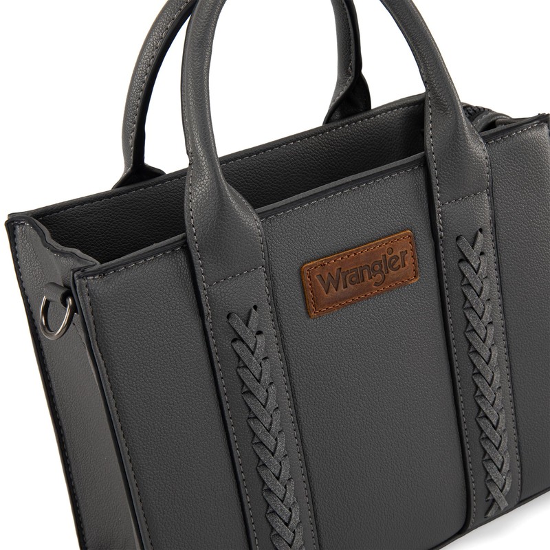 - Whipstitch design adds a touch of western flair to this small Wrangler tote, a special combination of wildness and elegance.
