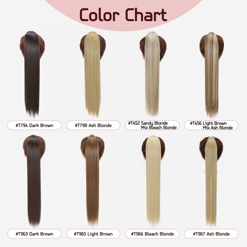 - Specification: length & texture: 23”Straight, 26”Straight; Color: more than 30 color available; one clips with wrap on design, easy to use and remove;