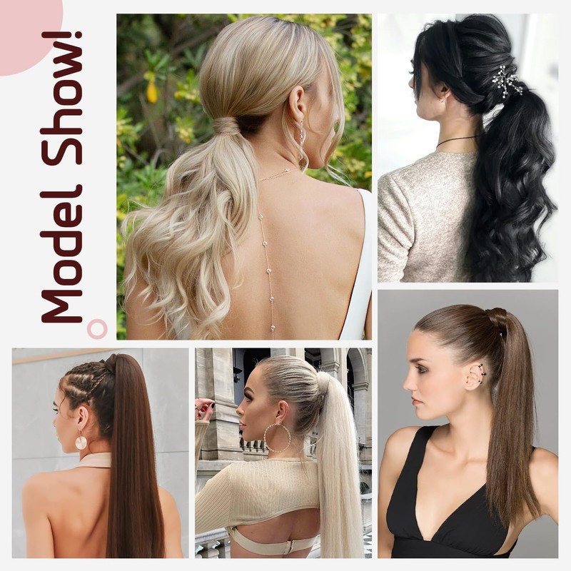 - Wrap Around Ponytail Extension is made by high quality synthetic fiber, heat resistant material, easy to DIY your ponytail style, bouncy and full;