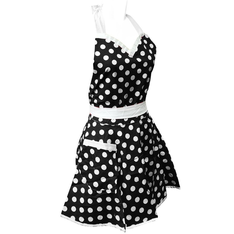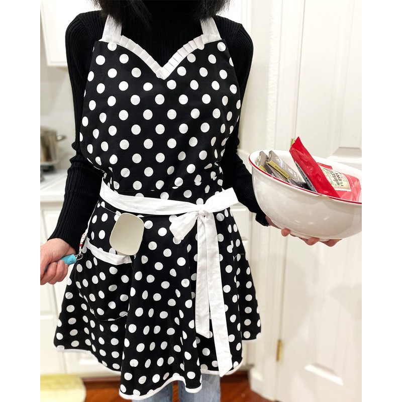 Wrapables Adjustable Flirty Hostess Apron, Black Polka Dots
