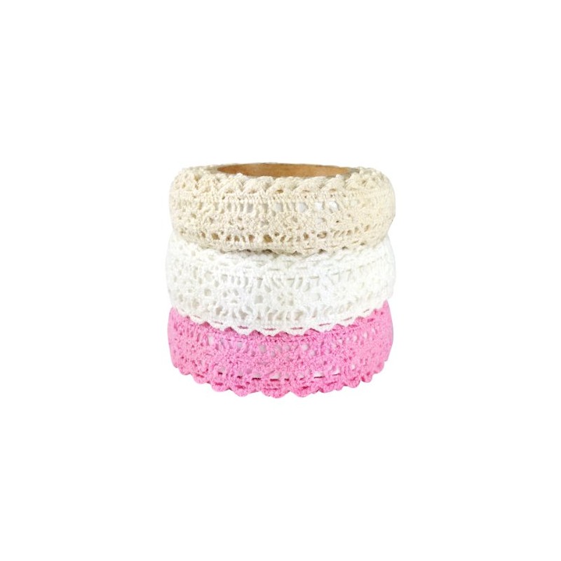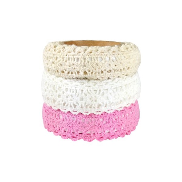 Wrapables Decorative Lace Tape (Beige, White, Pink), 200cm L x 15mm W (Set of 3)