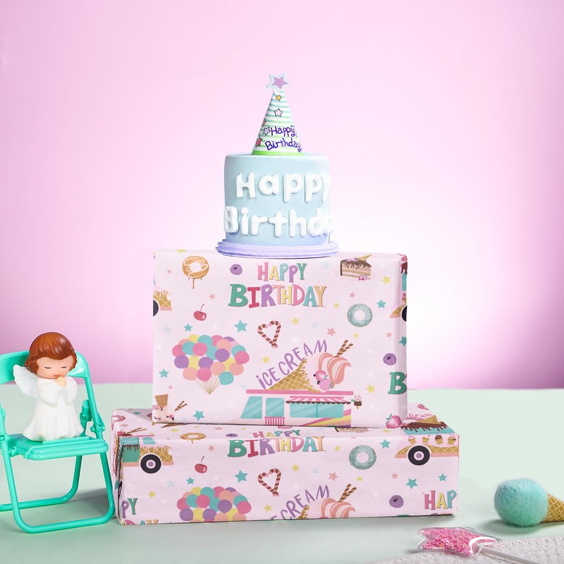 • BIRTHDAY DESIGN: Pink car with ice cream and "Happy Birthday" lettering design will make your gift special and shining.