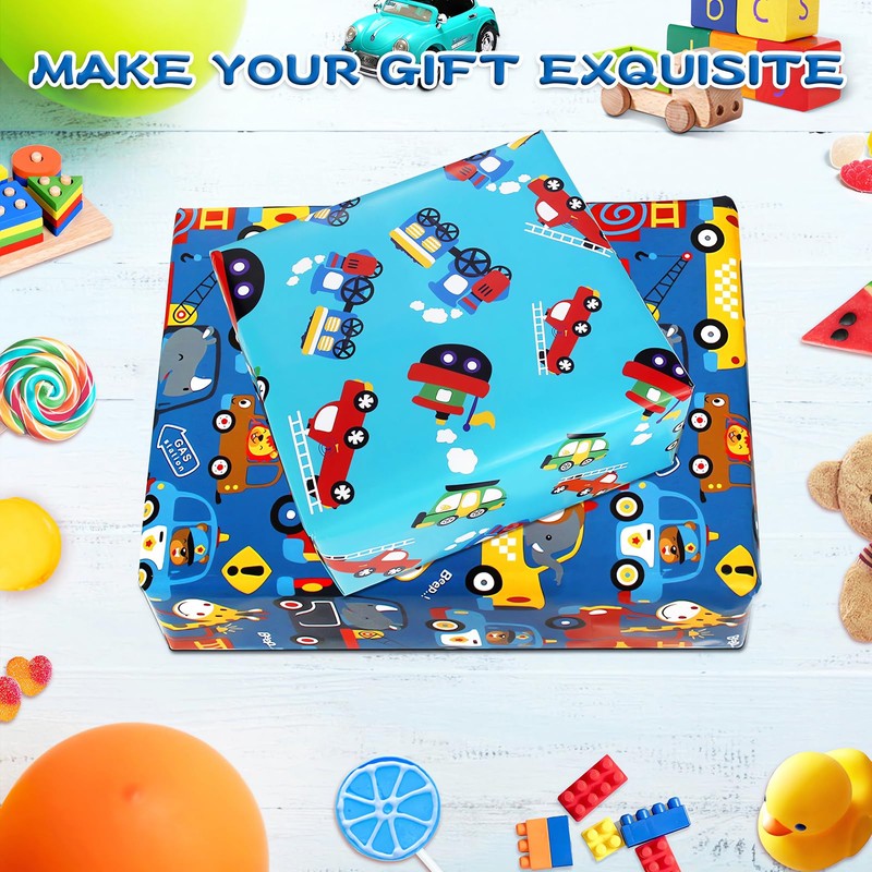 - Versatile: the cars wrapping paper children's birthday is suitable for little boys, children and occasions such as birthday parties, children's crafts, DIY decorations, congratulations, holidays and more. It will certainly make your gifts stand out at the party.