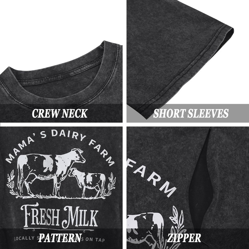 - Features: "Mama's Daily Farm Fresh Milk Lacally Sourced Always On Tap" letter printed tshirt, summer short sleeve nursing tops, side zipper nursing shirts, cotton maternity shirt, breastfeeding shirts for women, cute cow graphic tees, oversized vintage acid washed tshirt