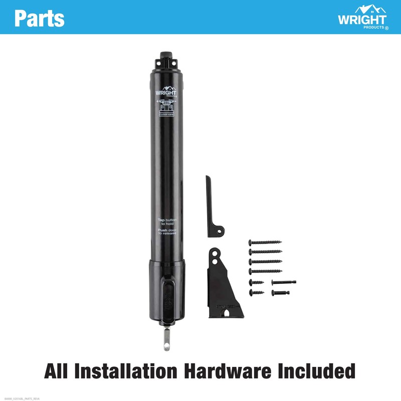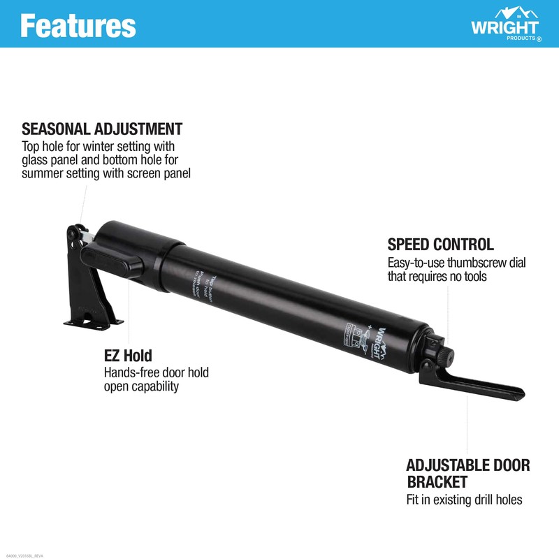 Wright Products Heavy Duty Pneumatic Screen & Storm Door Closer with EZ-Hold – Adjustable Speed, Durable & Easy Install, for Out-Swinging Doors (Modern, Black)