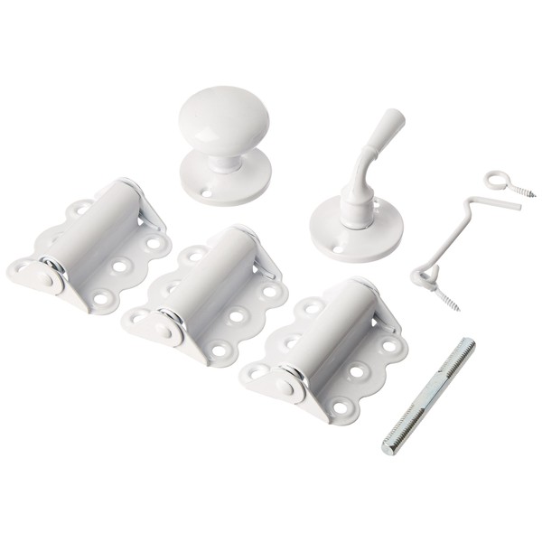 Wright Products Vinyl or Wood Screen Door Kit is a perfect way to upgrade the look of your screen door. This kit contains everything needed to install and operate the door. This kit contains spring loaded door hinges for installing your door and pull-handle to open your door. Need some added security? Use the hook and eye to lock unwanted guests out. Refresh the look of your old, dated, or worn out screen door parts without replacing your entire door. Finish: White For doors 1/2" to 1-3/4" thick Spring loaded door hinges for installing your door Pull-handle to open your door Use the hook and eye to lock unwanted guests out All installation hardware. Kit Contains: (3) Spring loaded hinges (1) Knobs (1) Lever Rosettes and Hook and eye