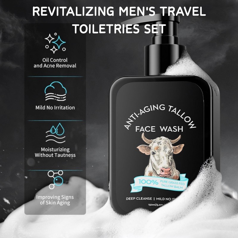 - 【Revitalizing Men's Travel Toiletries Set】 Perfect for active lifestyles, this men's travel toiletries set includes a pH-balanced tallow cleanser and nourishing beef tallow face cream. The compact, TSA-friendly kit removes impurities without over-drying, keeping skin clean and hydrated wherever you go