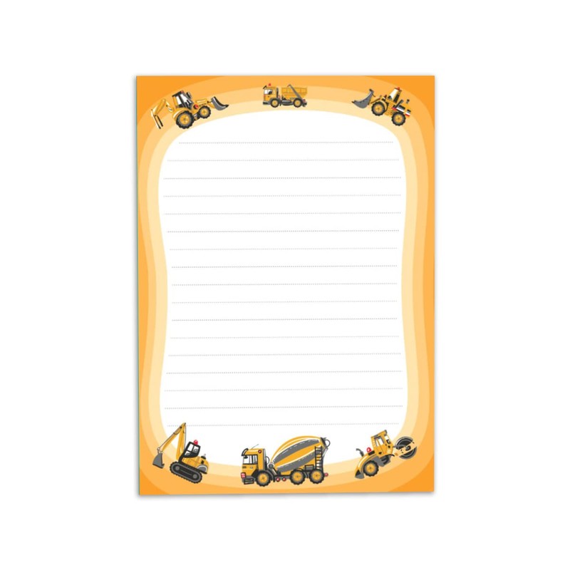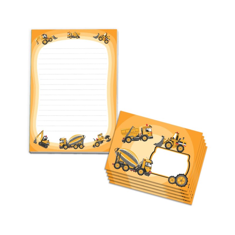 Writing Paper Set Letter Pad with Envelope for Children Construction Site Boys (Pad A5 with 25 Sheets + 15 Envelopes)